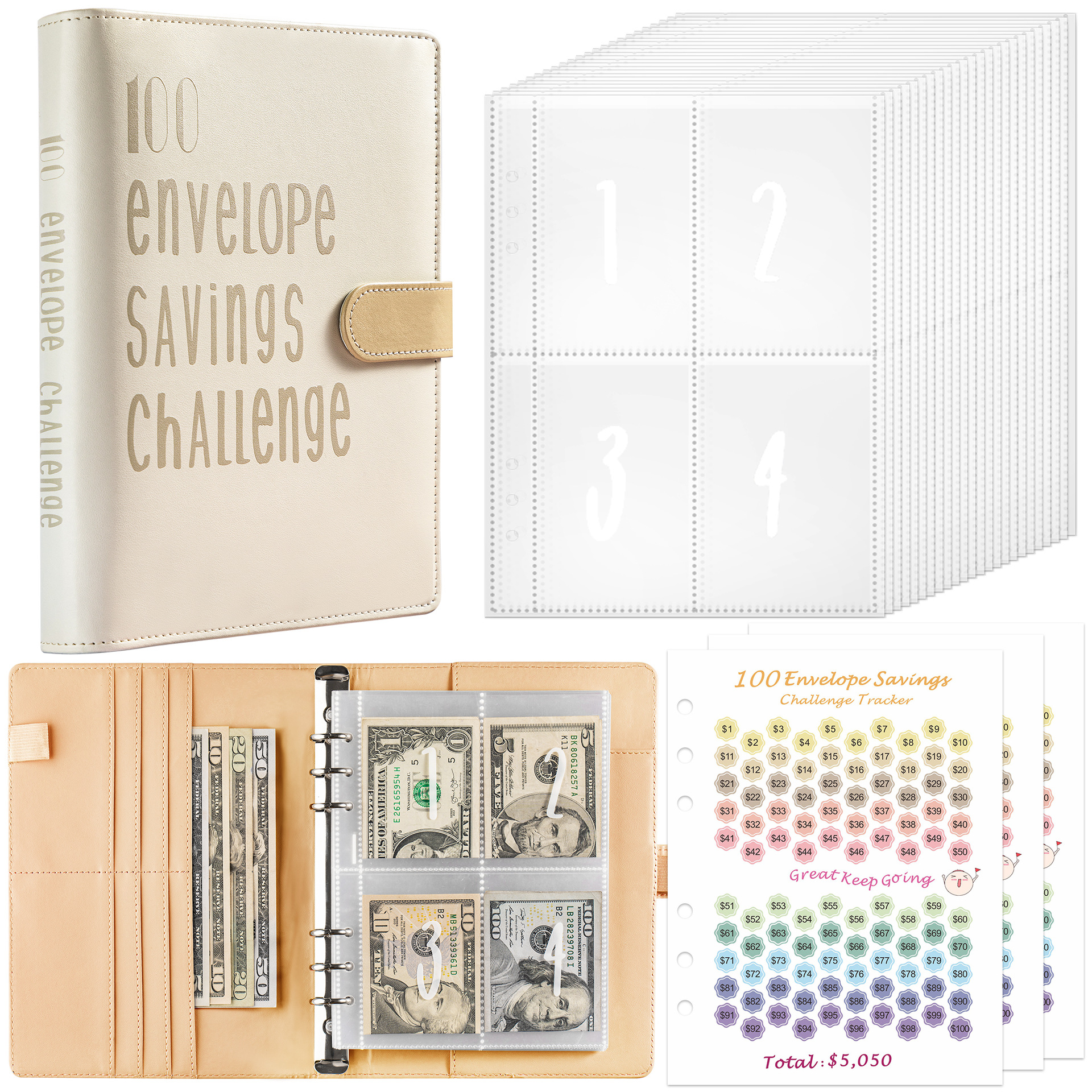 Učinkovito varčevanje denarja: Organizirajte svoje finance in dosezite svoje cilje varčevanja s to praktično mapo za proračun z gotovino. Razporedite sredstva v različne kategorije, spremljajte svojo porabo in opazujte, kako vaše prihranke rastejo.