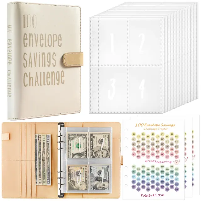 Izziv 100 ovojnic: Ta mapa za proračun z ovojnicami za gotovino je kot nalašč za pare, ki se lotevajo 100-dnevnega izziva varčevanja. Pomaga vam slediti napredku in ostati motivirani, ko skupaj delate na svojih finančnih ciljih.