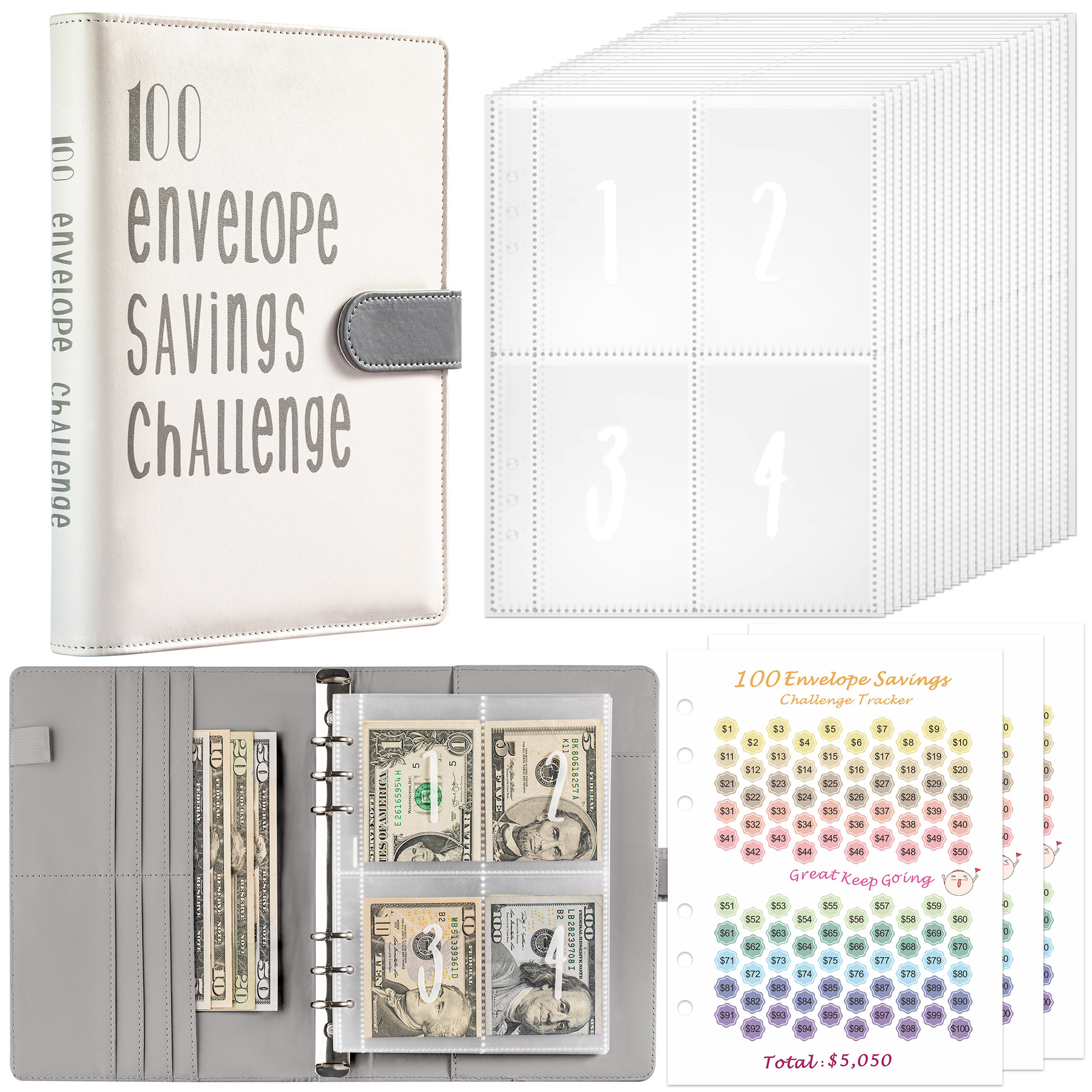 Izziv 100 ovojnic: Ta mapa za proračun z ovojnicami za gotovino je kot nalašč za pare, ki se lotevajo 100-dnevnega izziva varčevanja. Pomaga vam slediti napredku in ostati motivirani, ko skupaj delate na svojih finančnih ciljih.