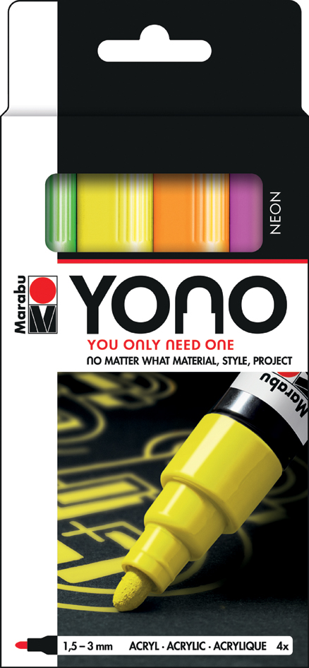 Marabu akrilni markerji, YONO, 1,5 - 3,0 mm, set 4 NEON