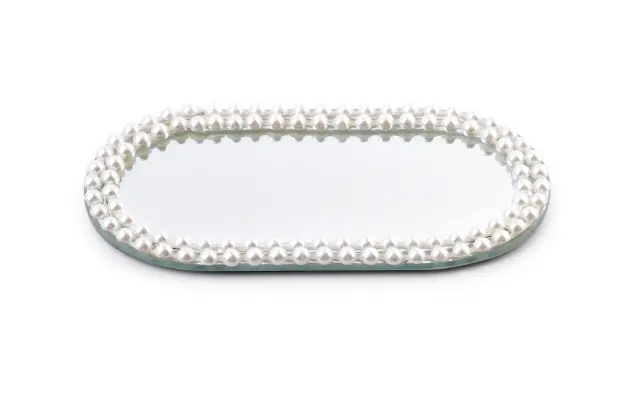MARGOT PEARL Dekorativna umetniška podlaga 20x10xh1cm Dekorativno stojalo iz serije MARGOT podjetja MONDEX je pravi dodatek za vaš dom, ki kombinira estetiko in funkcionalnost. Izdelano iz ogledala in skrbno izbranih dekorativnih elementov, to stojalo ne le da pritegne pogled, temveč prav tako omogoča ustvarjanje edinstvenih in stilskih dekorativnih postavitev. Njegova bogata ornamentika doda element razkošja, ki pripomore k izboljšanju vsakega interierja.Odlično se obnese kot podlaga za dekoracijo mize, saj ponuja prostor za postavitev sveč, cvetja ali drugih dekorativnih elementov. S svojimi kompaktno oblikovanimi dimenzijami (dolžina 20 cm, širina 10 cm, višina 1 cm) se lahko prilega v različne prostore, bodisi doma bodisi v poslovnih okoljih. Kombinacija ogledala in dekorativnih potiskov ne le da odseva svetlobo, temveč tudi poudarja vašo izvirnost in občutek za stil.Izdelek je pakiran v elegantni beli kartonski škatli dimenzij 21x21 cm in višine 2 cm, kar ga naredi tudi odličnega za darilo. Ne glede na to, ali iščete način za osvežitev svojega domačega prostora ali pa iščete popolno darilo za prijatelja, je dekorativno stojalo iz serije MARGOT izjemna izbira, ki bo zadovoljila še tako zahtevno oko. Dodajte pridih sloga in elegance svojemu domu s tem vrhunskim izdelkom podjetja MONDEX.