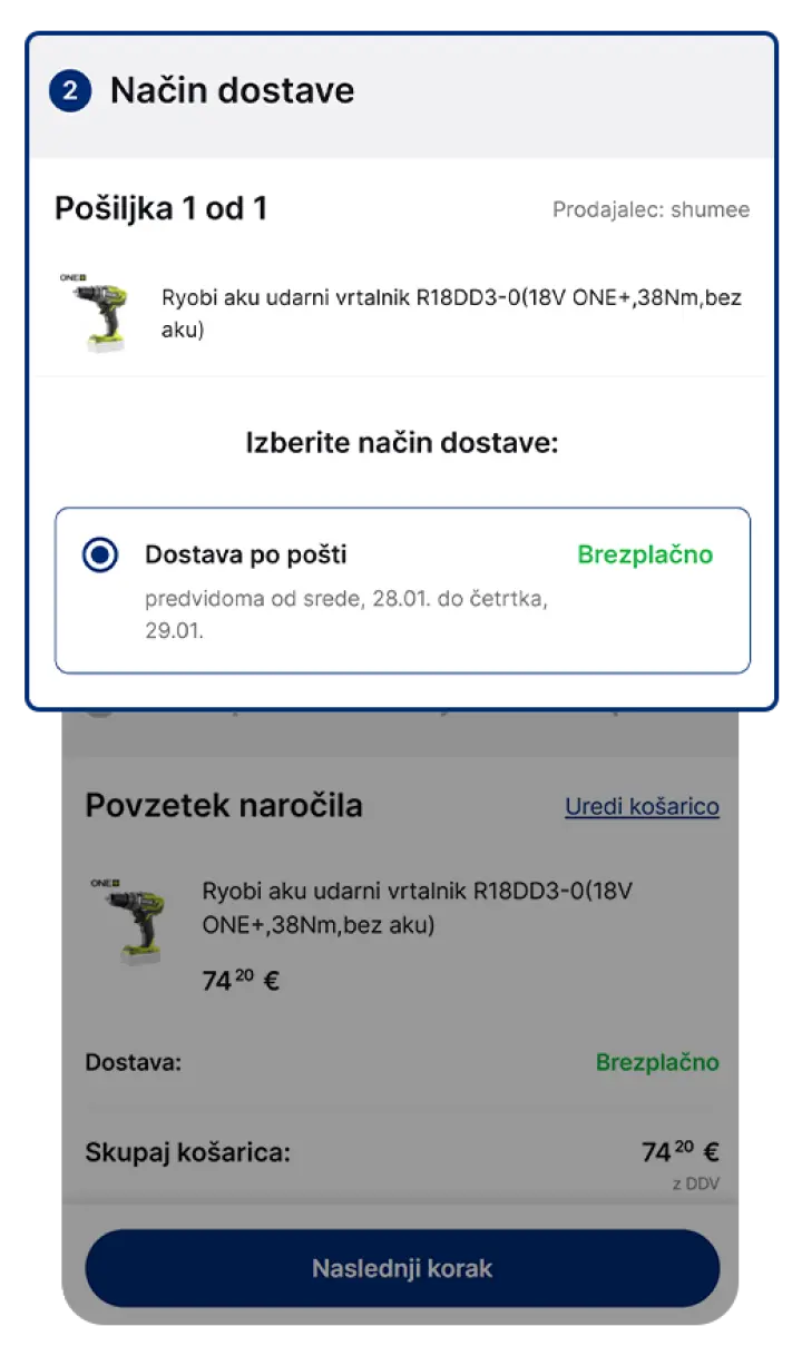 Naročilo lahko vključuje izdelke različnih prodajalcev, zato lahko prispejo v več pošiljkah. Čas dostave je odvisen od posameznega prodajalca.