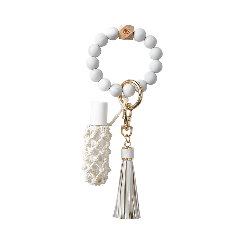 Stilska in funkcionalna: Ta zapestnica za ključe združuje modo in praktičnost. Elegantna marmorno bela barva doda pridih prefinjenosti vašemu vsakdanjemu videzu, medtem ko varna pritrditev za ključe poskrbi, da so vaši ključi organizirani in vedno pri roki.