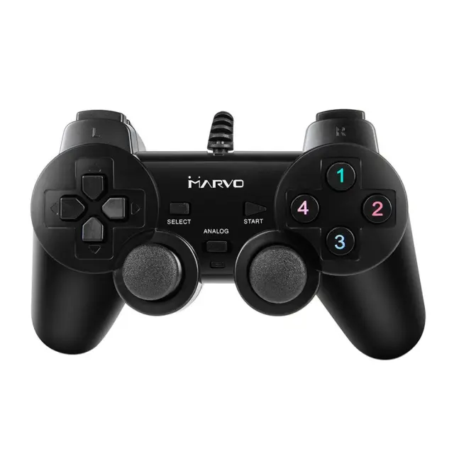 MARVO GT-006BK je kontroler za osebni računalnik z znano postavitvijo tipk. Krmilnik udobno sedi v roki in je opremljen s kablom USB dolžine 1,5 metra.