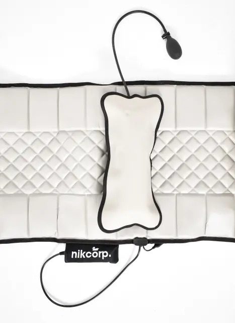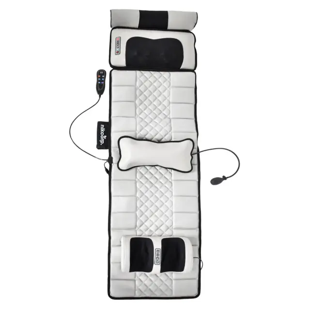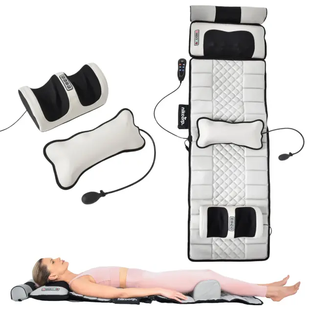 Masažna blazina Nikcorp s funkcijo ogrevanja predstavlja učinkovit način za sprostitev in celovito razbremenitev telesa v domačem okolju. Naprava je opremljena z desetimi vibracijskimi motorji, ki sistematično zajemajo ključne dele telesa, vključno s hrbtom, pasom, boki, stegni in meči. Zasnova omogoča tudi simulirano gnetilno masažo na predelu vratu in stopal, kar zagotavlja globoko sprostitev mišičnih tkiv. Zaradi svoje prilagodljive oblike in materialov je podloga primerna za uporabo na različnih površinah, kot so kavči, fotelji, postelje ali celo tla.