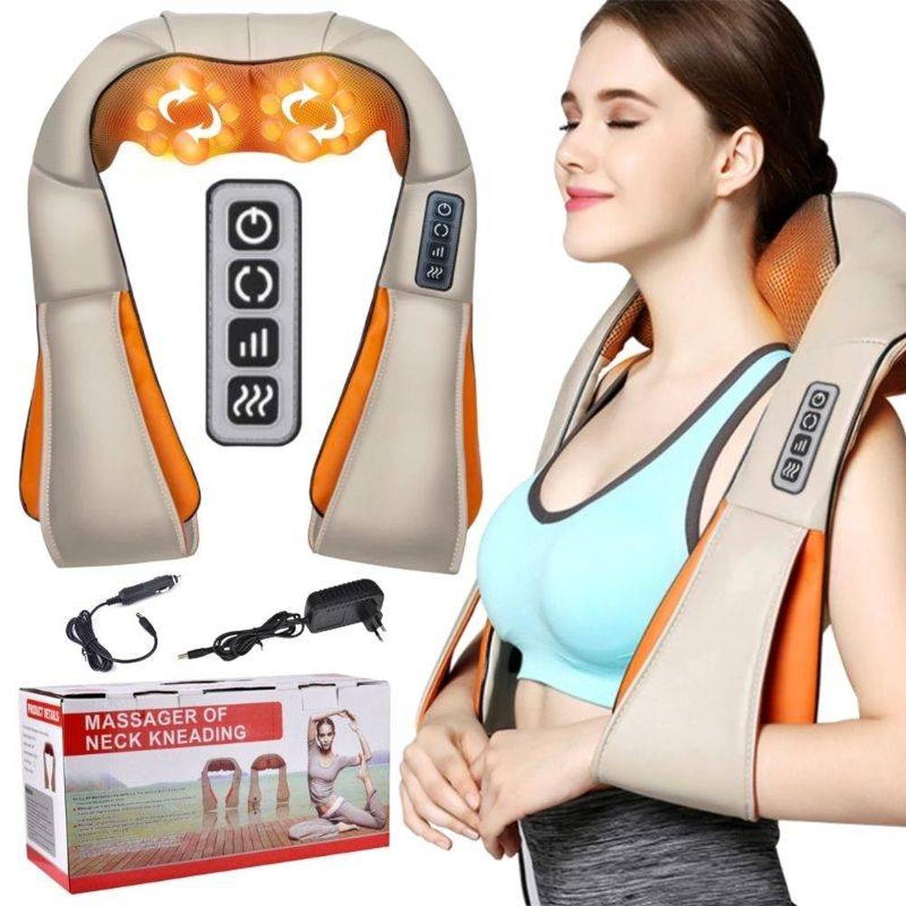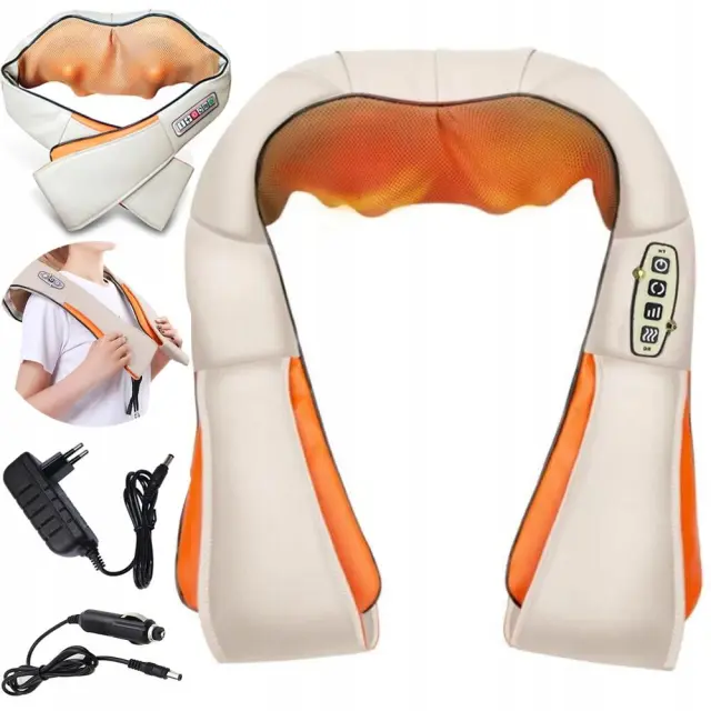 Masažer za vrat in zatilje sprosti napete mišice z masažo z 2 rotacijskima glavama s 4 masažnimi kroglicami (kroglice se vrtijo v nasprotni in nasprotni smeri urinega kazalca) ter sprosti po napornem dnevu in učinkovito odpravi bolečine v vratnem in ledvenem delu. Izdelan je iz mehkega eko usnja in zračne mrežaste tkanine.