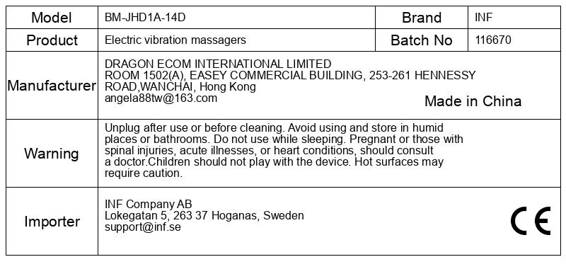 Po uporabi ali pred čiščenjem izklopite. Izogibajte se uporabi in hranite v vlažnih prostorih ali kopalnicah. Ne uporabljajte med spanjem. Nosečnice ali osebe s poškodbo hrbtenice, akutnimi boleznimi ali boleznimi srca naj se posvetujejo z zdravnikom. Otroci naj se ne igrajo z napravo. Pri vročih površinah bo morda potrebna previdnost.