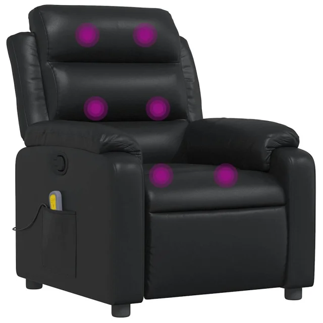 masažni naslanjač - Relax naslanjač črno umetno usnje