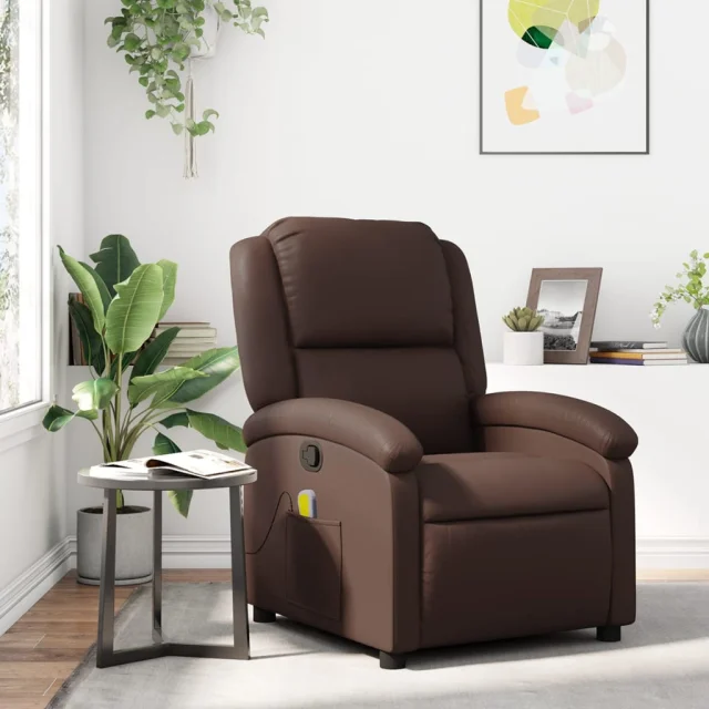 masažni naslanjač - Relax naslanjač rjavo umetno usnje