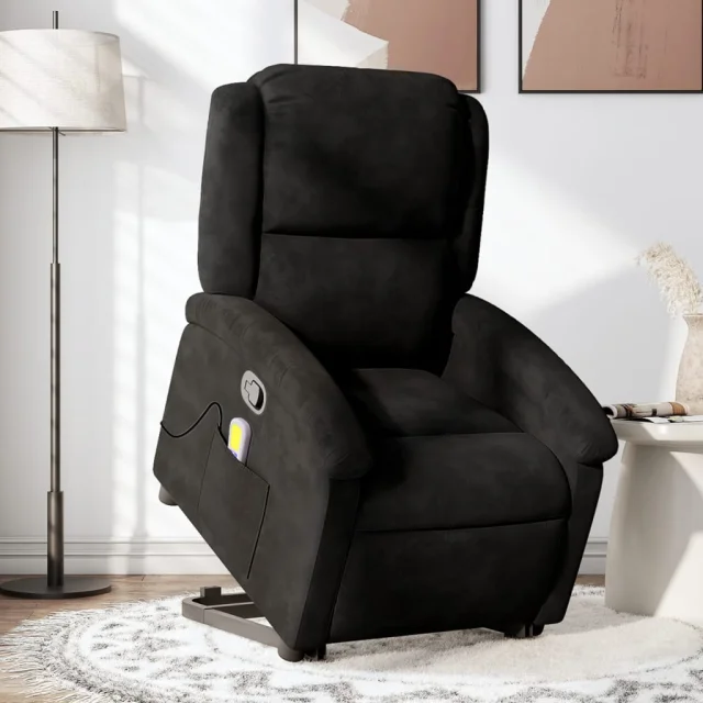 masažni naslanjač - Relax naslanjač s funkcijo vstajanja črn žamet