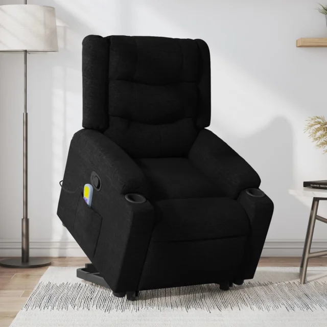 masažni naslanjač - Relax naslanjač s funkcijo vstajanja črno blago