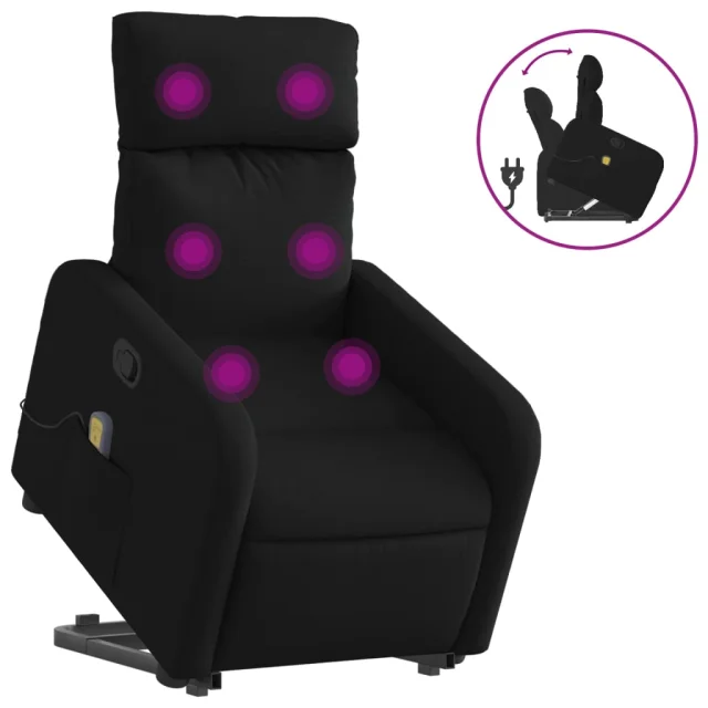 masažni naslanjač - Relax naslanjač s funkcijo vstajanja črno blago