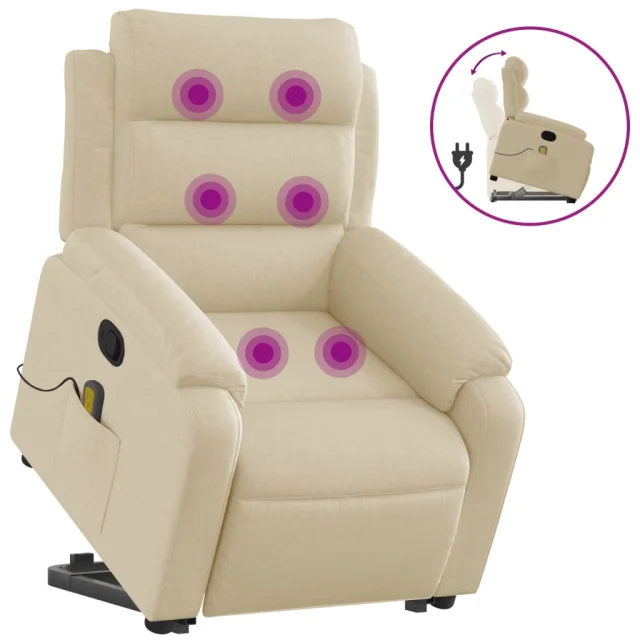 masažni naslanjač - Relax naslanjač s funkcijo vstajanja krem blago