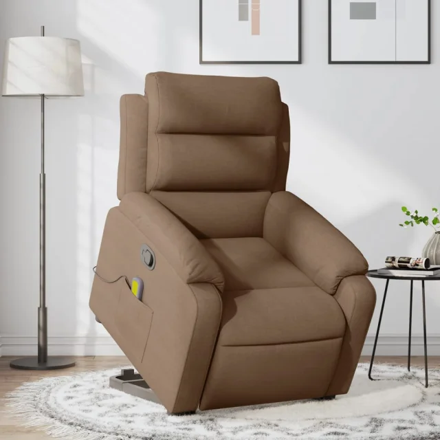 masažni naslanjač - Relax naslanjač s funkcijo vstajanja rjavo blago