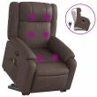 masažni naslanjač - Relax naslanjač s funkcijo vstajanja rjavo umetno usnje