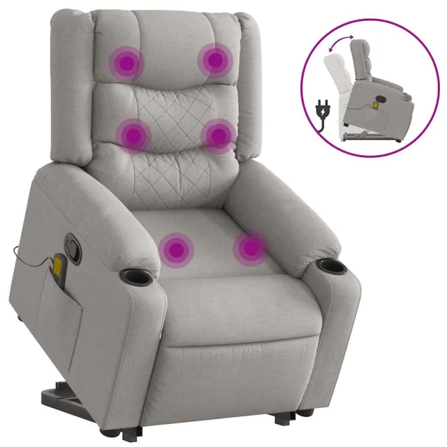 masažni naslanjač - Relax naslanjač s funkcijo vstajanja sivo blago
