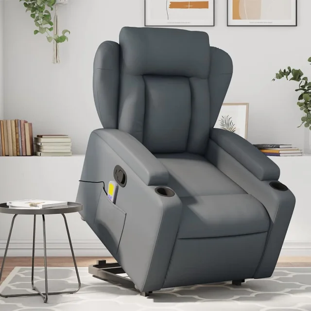 masažni naslanjač - Relax naslanjač s funkcijo vstajanja sivo umetno usnje
