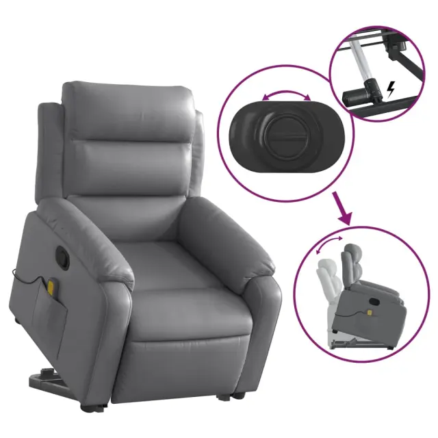 masažni naslanjač - Relax naslanjač s funkcijo vstajanja sivo umetno usnje
