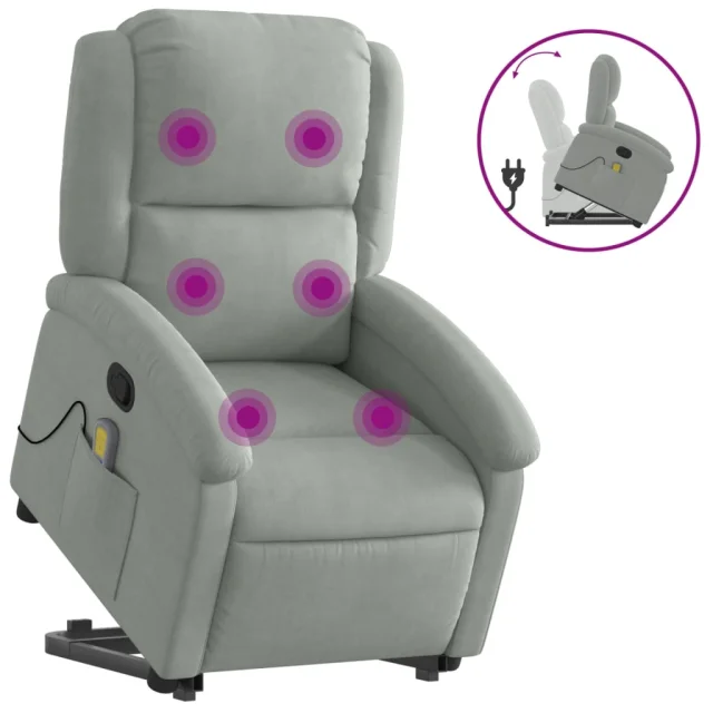 masažni naslanjač - Relax naslanjač s funkcijo vstajanja svetlo siv žamet