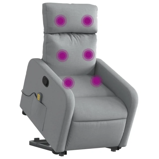 masažni naslanjač - Relax naslanjač s funkcijo vstajanja svetlo sivo blago