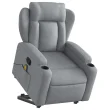 masažni naslanjač - Relax naslanjač s funkcijo vstajanja svetlo sivo blago