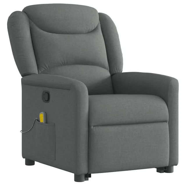 masažni naslanjač - Relax naslanjač s funkcijo vstajanja temno sivo blago