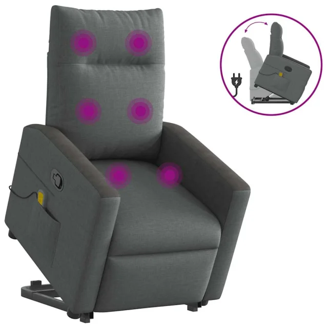 masažni naslanjač - Relax naslanjač s funkcijo vstajanja temno sivo blago
