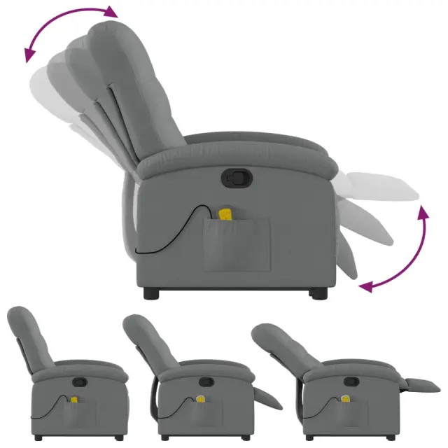 masažni naslanjač - Relax naslanjač s funkcijo vstajanja temno sivo blago
