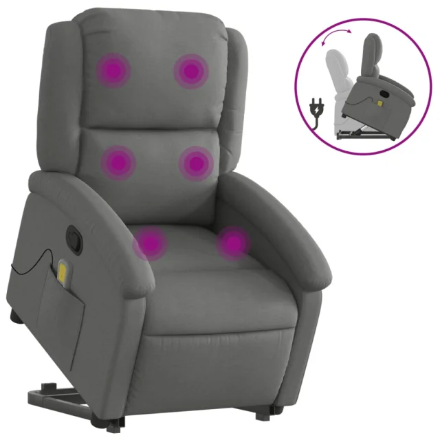 masažni naslanjač - Relax naslanjač s funkcijo vstajanja temno sivo blago