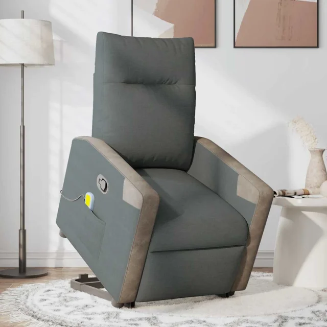 masažni naslanjač - Relax naslanjač s funkcijo vstajanja temno sivo blago