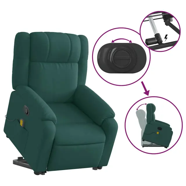 masažni naslanjač - Relax naslanjač s funkcijo vstajanja temno zeleno blago