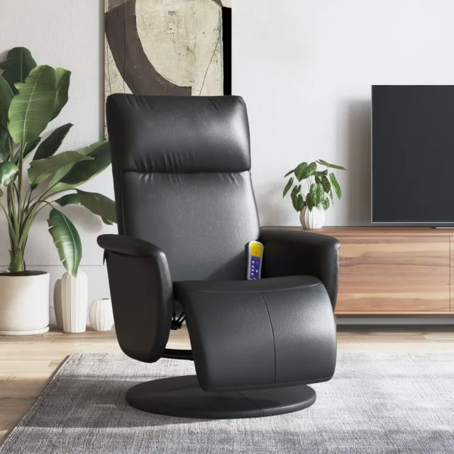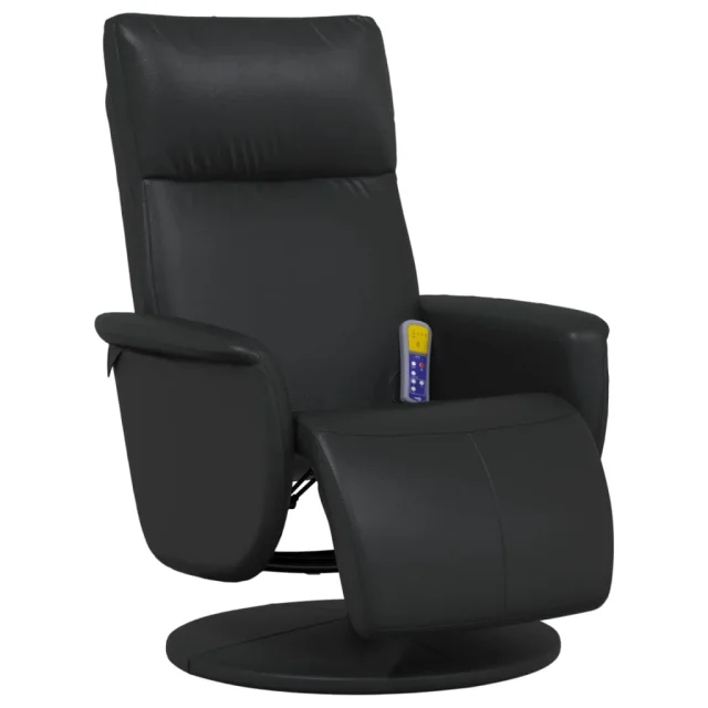 masažni naslanjač - Relax naslanjač z naslonom za noge črno umetno usnje