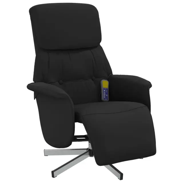 masažni naslanjač - Relax naslanjač z oporo za noge črno blago