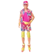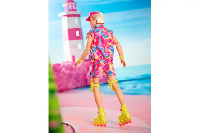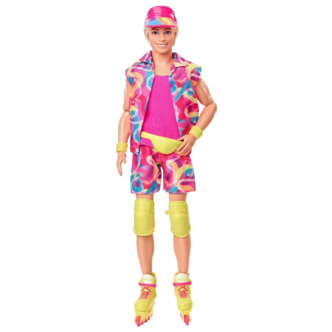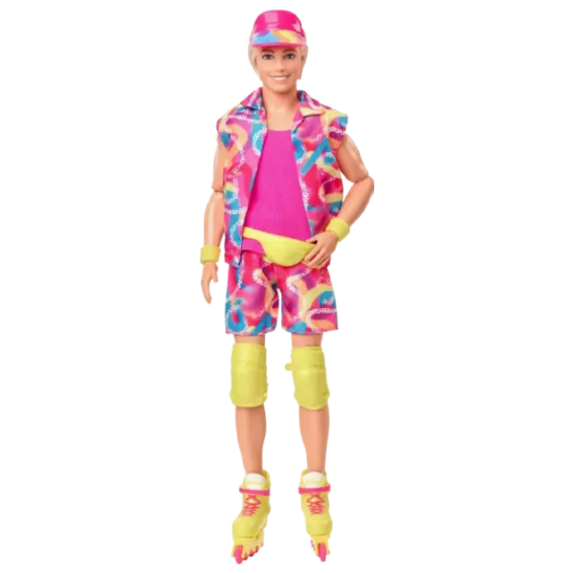 Pozdravi iz Barbie™ dežele! Ta zbirateljski Ken® punčka je prava mojstrica v drsanju v retro navdihnjeni obleki, ki je bila v filmu Barbie™ The Movie. Oblečen je v vroče roza majico in pisano usklajen komplet, dopolnjen z vizirjem, zaščitnimi koleni in neon drsalkami Impala. Navdihnjen z likom Kena v celovečernem filmu, je odlično darilo za oboževalce in zbiratelje! Punčka ne more stati sama.