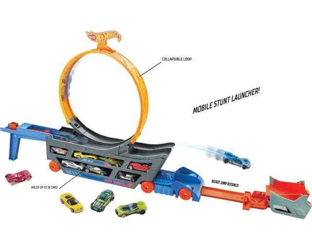 Združuje funkcije prevoza in dirkališča. Rampe in zanke za neverjetne skoke in zanke. Sestavite jih lahko na različne načine in tako ustvarite prilagojene poti.. Tovornjak lahko sprejme do 18 miniaturnih avtomobilov, kar ponuja številne možnosti za igro..
