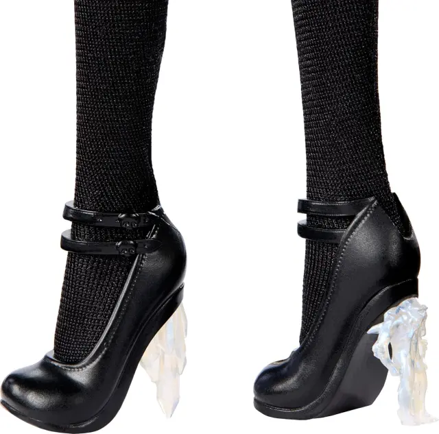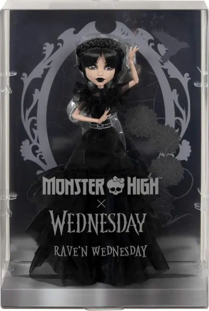 Kolekcija Monster High x Wednesday se poklanja temačni in duhoviti televizijski seriji z izjemno linijo lutk. Kakšna noč! Lutka Rave'N Wednesday, navdihnjena z značilno vintage obleko iz prizora plesne šolske prireditve, prinaša gotski glamur s črno obleko. Temna kot njen smisel za humor ima obleka iz organze prosojne plasti, ki so videti kot sence. Drzen pas in uhani Monster High dopolnjujejo njen očarljivo temačni videz. Pripravljena je za nočno moro v svojih posebnih čevljih! Pete v obliki ledenih sveč in yetija se navezujejo na temo plesa Rave'N: podnebna kriza sreča dogodek izumrtja. Oglejte si celotno linijo Monster High x Wednesday za več lutk, ki bodo očarale zbiratelje in oboževalce.