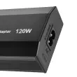 Univerzalna združljivost z 10 nasveti za vse glavne znamke prenosnih računalnikov. Samodejno prilagodi izhodno napetost med 15 in 24 V za optimalno in varno polnjenje. Zagotavlja 120 W moči za hitro in učinkovito polnjenje naprav. Vgrajena LED dioda za takojšnje vizualno preverjanje stanja napolnjenosti.