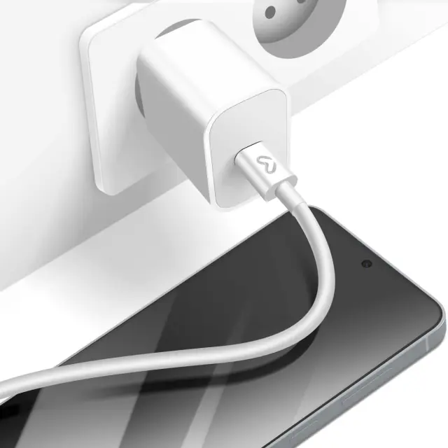 Mayaxess, 20W omrežni polnilnik za Samsung Galaxy S25 + 1m USB-C kabel, Bela