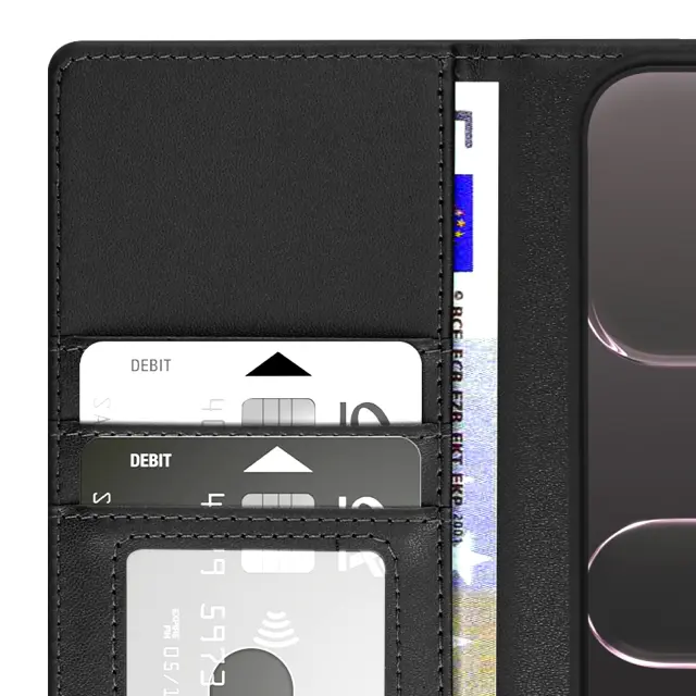 Zasnova 2-v-1 z magnetno snemljivo lupino za hitro in prilagodljivo uporabo. Vgrajena funkcija denarnice s 3 režami za kartice in žepom za bankovce. Praktično držalo za videoposnetke za ogled vsebine brez držanja telefona. Robustno magnetno zapiranje z zavihkom ohranja kovček varno zaprt.