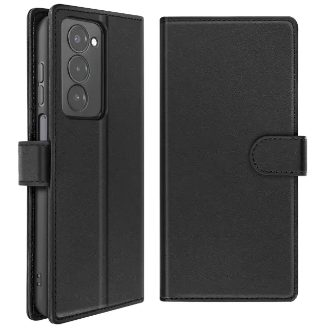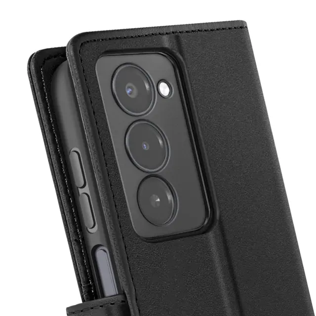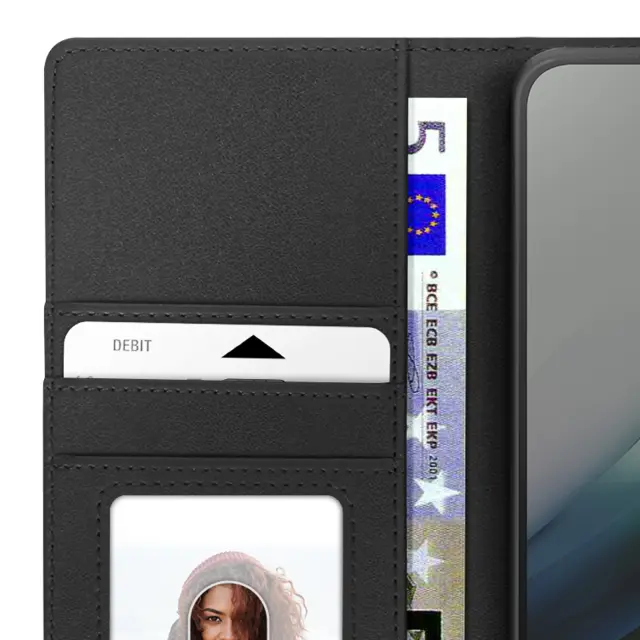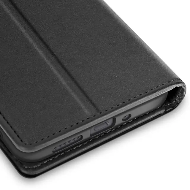 Zasnova 2-v-1 z magnetno snemljivo lupino za hitro in prilagodljivo uporabo. Vgrajena funkcija denarnice s 3 režami za kartice in žepom za bankovce. Praktično držalo za videoposnetke za ogled vsebine brez držanja telefona. Robustno magnetno zapiranje z zavihkom ohranja kovček varno zaprt.