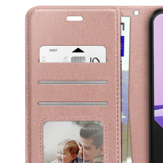 Ta šampanjsko roza denarnica za telefon Xiaomi Redmi 15C združuje zrnat in satenast zaključek s praktično zasnovo za vsakodnevno uporabo.. Notranji zavihek ima tri vodoravne reže za bančne kartice, priponke ali vstopnice.. Spodnji prozorni žep se lahko uporablja za prikaz fotografije ali osebne izkaznice Spodnji prozorni žep se lahko uporablja za prikaz fotografije ali osebne izkaznice. Mehka notranja lupina TPU drži pametni telefon na mestu in ščiti robove pred udarci.