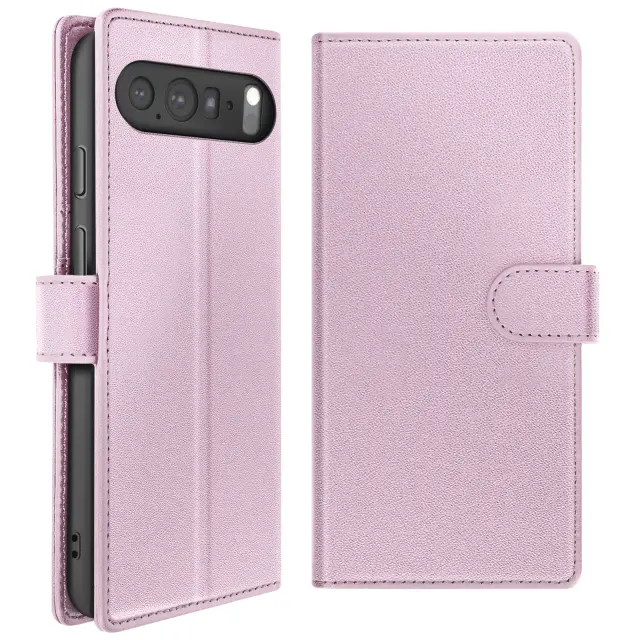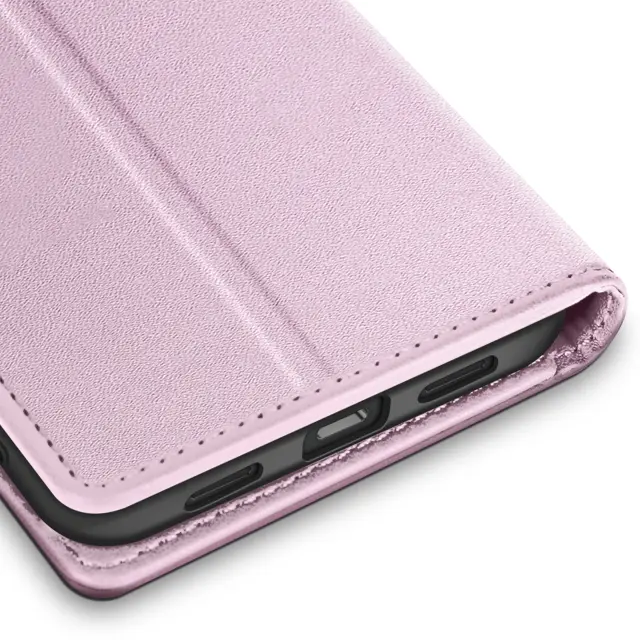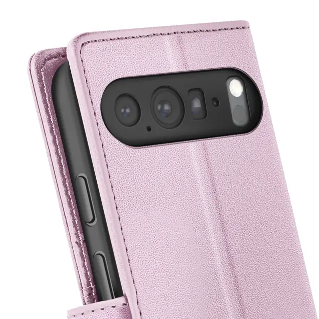 Ta roza denarnica za Google Pixel 10 / 10 Pro je elegantnega videza z zrnatim zavihkom, ki se zapira z magnetnim zavihkom.. Mehka notranja lupina TPU je pritrjena z magnetnim sistemom in absorbira vsakodnevne udarce.. V notranjosti sta dve reži za kartice in stranski žep za vstopnice.. Zložljiv zavihek predstavlja idealno vodoravno oporo za videoposnetke ali prostoročne klice..