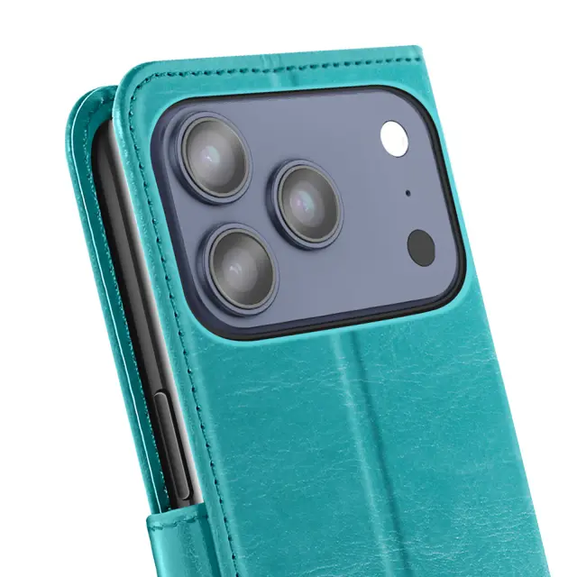 Ta denarnica za iPhone 17 Pro Max v račje modri barvi združuje zrnat in satenast zaključek s praktično zasnovo za vsakodnevno uporabo.. Notranji zavihek ima tri reže za bančne kartice, priponke ali vstopnice.. Prozoren spodnji žep za prikaz fotografije ali osebne izkaznice. Mehka notranja lupina TPU drži pametni telefon na mestu in ščiti robove pred udarci.