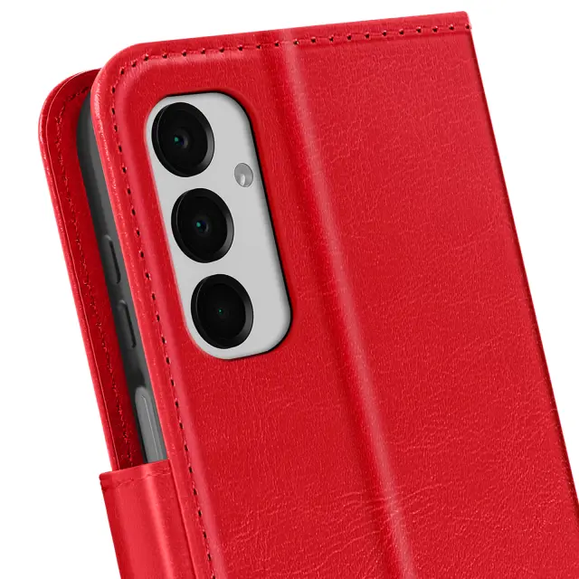 Rdeč ovitek Mayaxess, ki zagotavlja popolno zaščito za vaš Galaxy A16. Prevlečen v elegantno imitacijo usnja za uspešno preobrazbo telefona. Robusten magnetni zaklop preprečuje nenamerno odpiranje in zagotavlja popolno varnost.. Vgrajen prostor za shranjevanje kartic, da boste imeli vse pri roki.