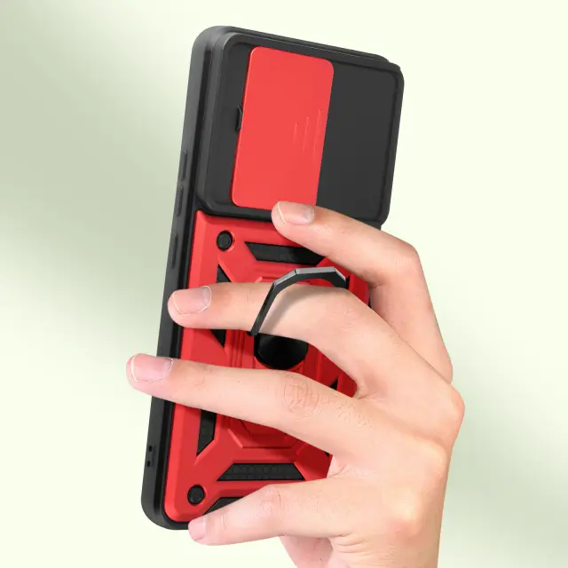Rdeče ohišje iz biomateriala podjetja Mayaxess, zasnovano za zaščito vaše [ime naprave] pred vsakodnevnimi nesrečami. Narejen je iz mešanice polikarbonata in silikonskega gela za popolno odpornost proti praskam in udarcem.. Testirano po standardu MIL-STD-810G 516.6, kar zagotavlja varno zaščito pred padci. Drsni pokrov kamere za zaščito enote kamere pred praskami in udarci.