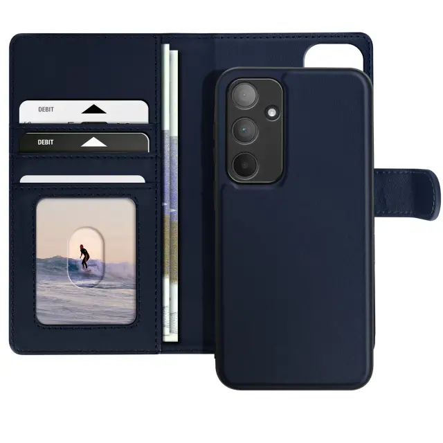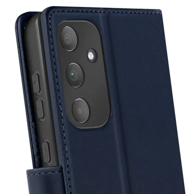 Nočno modro ohišje Clamshell Case iz Mayaxessa, ki bo vaš Samsung Galaxy A35 krasilo v slogu. Z enim samim gibom enostavno preklopite iz denarnice v preprosto lupino. Izkoristite zanesljivo magnetno zapiranje, ki lupino varno drži na mestu. Zaščitite zaslon in objektiv z ojačanimi zaščitnimi robovi.