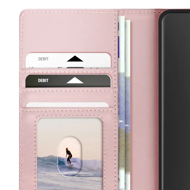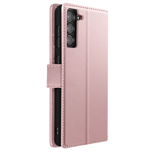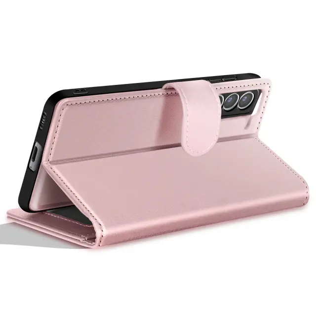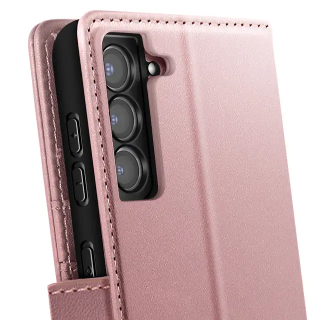 Rožnato zlato ohišje iz Mayaxessa, ki stilsko obarva vaš Samsung Galaxy S21. Z enim samim gibom enostavno preklopite iz denarnice v preprosto lupino. Izkoristite zanesljivo magnetno zapiranje, ki lupino varno drži na mestu. Zaščitite zaslon in objektiv z ojačanimi zaščitnimi robovi.