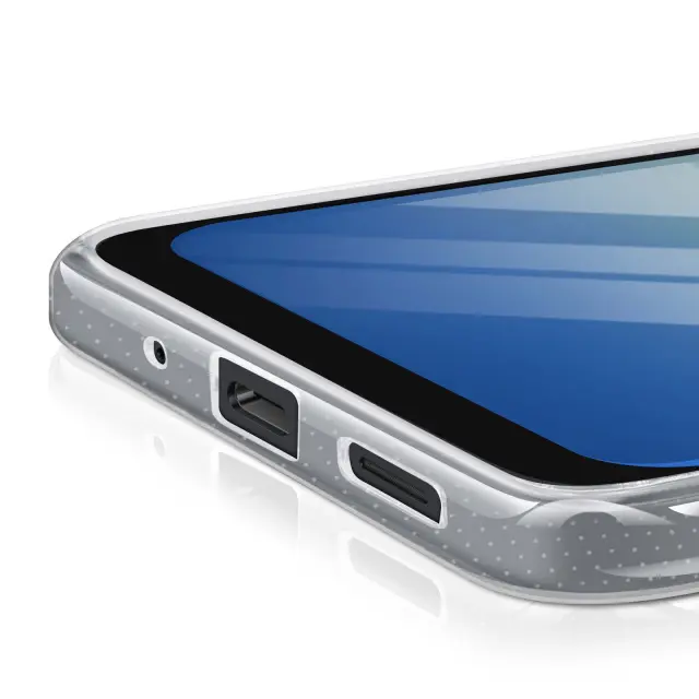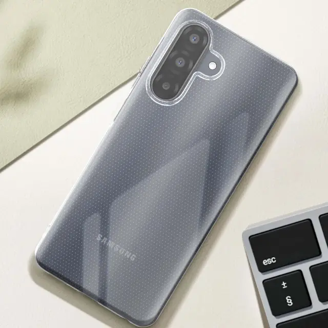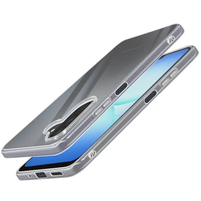 Mehka, prožna silikonska zaščita pred udarci učinkovito absorbira vsakodnevne udarce. Dvignjeni robovi okoli zaslona in fotografskega modula za dodatno zaščito v primeru padca. Izjemno tanka zasnova, ki ohranja tankost in lahkotnost telefona Galaxy A17. Prijeten na otip z mehkim zaključkom za udoben in varen oprijem.