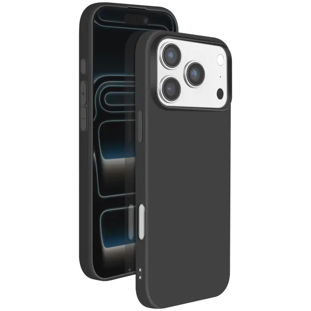 Ta črni silikonski ovitek zagotavlja učinkovito zaščito telefona iPhone 17 Pro Max pred praskami ter vsakodnevnimi udarci in trki.. Ojačani vogali lupine pomagajo ublažiti udarce ob padcu in zmanjšajo tveganje poškodb.. Mat premaz na ohišju zmanjšuje količino prstnih odtisov in omogoča, da ostane čist tudi po daljši uporabi.. Mehka površina izboljša oprijem in zmanjša zdrs pri uporabi pametnega telefona.