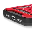 To rdeče ohišje za iPhone 17 Pro ima trdno zadnjo stran iz teksturiranega polikarbonata z mat površino, ki je odporna na praske in sledi.. Okvir lupine je skladen s standardi MIL-STD-810G 516.6 in učinkovito absorbira udarce večkratnih padcev. Kovinski vrtljivi obroč se vrti za 360° in drži napravo v vodoravnem položaju za videoposnetke ali videoklice.. Zaradi feromagnetnega vložka, vgrajenega v obroč, je lupina združljiva z magnetnimi nosilci za avtomobile..